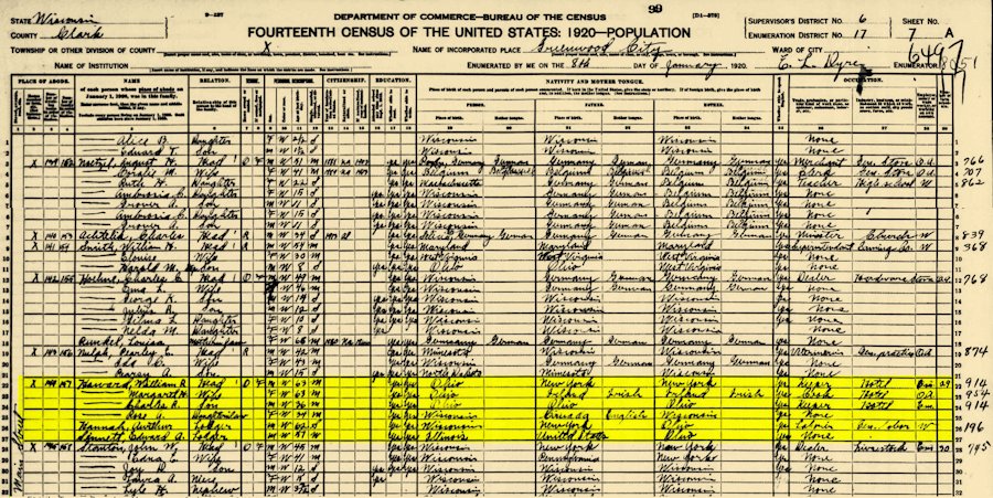 1920 Federal Census, Greenwood, Clark, Wisconsin, United States