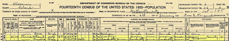 1920 Federal Census, Neillsville, Clark, Wisconsin, 14th St; Jan 6th by Rose E. Longnecker