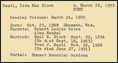 Obit: Rastl, Lida Mae Bloch (1909-1995)