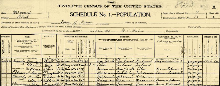 Edward Kenedy (Kennedy) Male 16 Single White Nephew Apr 1884 WI WI WI