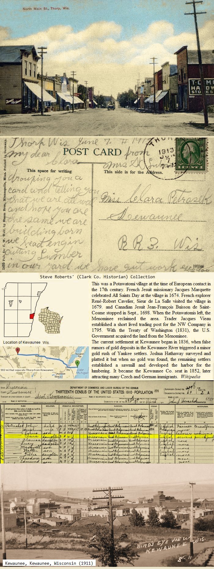 [Postcard (1913)] Katherine Grabarkiewicz Lubant to Clara Petrasek / Petrishek, written just after the Lubant's moved to Clark County, Wisconsin.