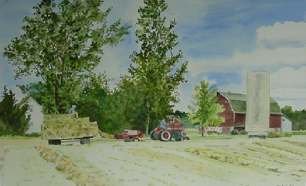 Water Color Painting of the Farm at haying time by Helen Vater Blaha