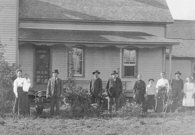 before the rest of his family, speculated to be about 1880. He purchased three 80 acre parcels of partially cleared land and built complete farm buildings for this three sons of the available white pine timber on his land.