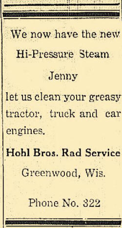 Jacob "Walter" Hohl was born July 4, 1914 in Greenwood to Edwin and Katherine (Sonderegger) Hohl, and received his education in Greenwood schools. He and his brother (Edwin) "Fritz" owned and operated the Hohl Brothers Garage where they also had a "Rambler" dealership. It was located where Branstiter is now and was across the street from “Farmers Store”. Ron Hribar