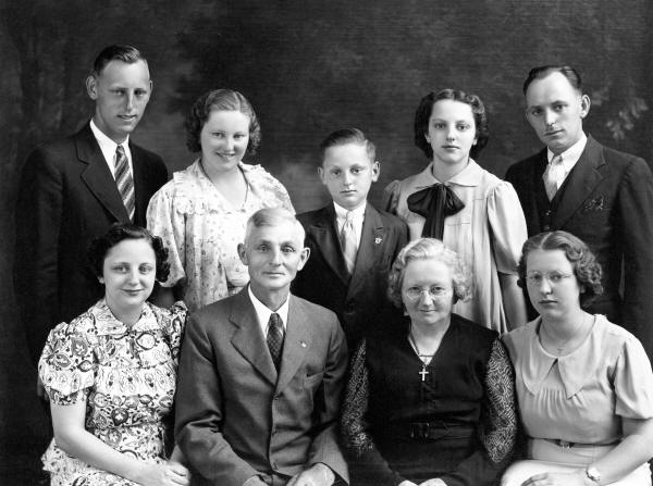 1938 George and Mary Kocherer Haas Family Back: Bernard, Margaret, Leonard, Marcella, Conrad Front: Annabelle, George, Mary, Manetta |