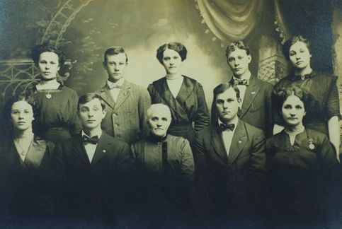 Front: Bertha Haas Boie, George Haas, Brigita Geitner Haas, Joseph Haas, Anna Marie Haas Smitke