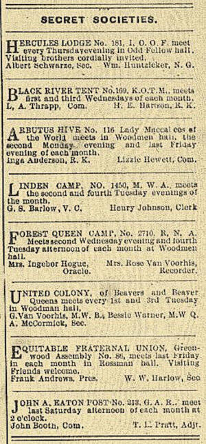 The above notice for Black River Tent, No. 169, K.O.T.M. appeared in the Greenwood Gleaner,