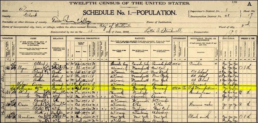 Bertha Volkman Female 17 1888 Abt 1888 Wisconsin Single White Daughter Daughter