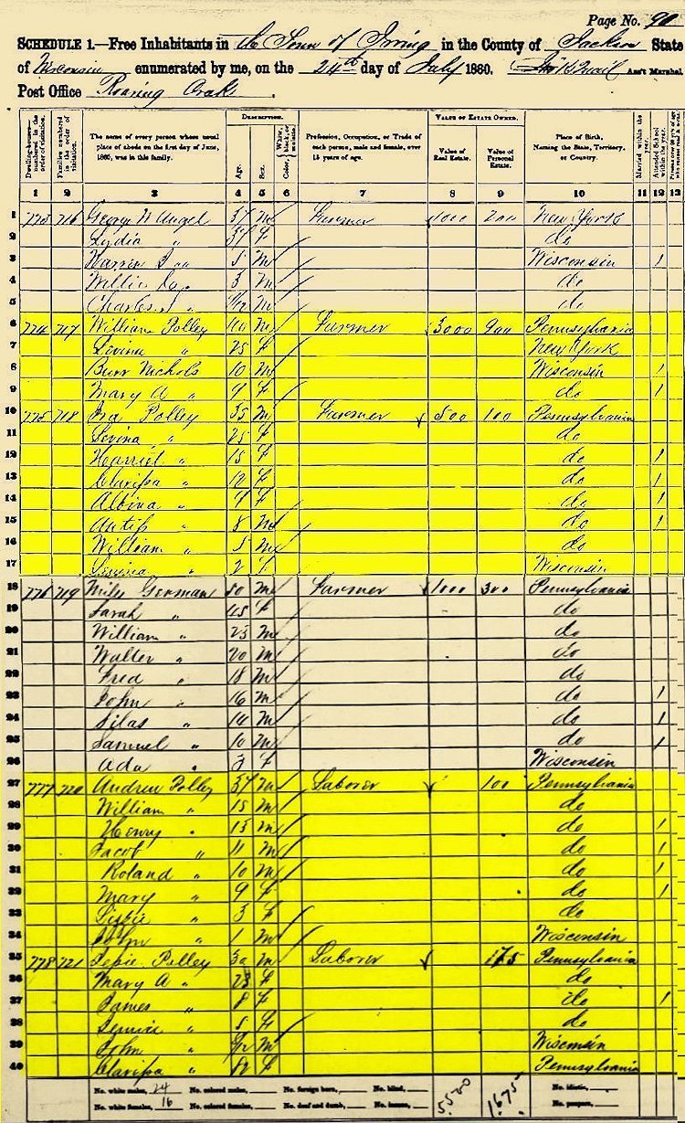 It is suggested (but not confirmed) that Samuel Polly of Minisink, Orange, New York was the father of William Polley Sr., and grandfather of William (the subject of this record), Ira, Andrew and Jesse Polley.