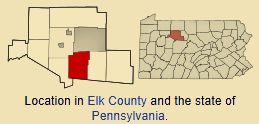 The resident tax-payers of Elk County, PA in 1844 were: George Artz (joiner) , Michael Brown, Chauncey Brockway, Philetus Clark (saw- mill) , Daniel Clark, Joseph T. Comley (tannery) , Jeremiah Callahan, Henry Carnes (saw- mill), Josiah Earl, Clark Eggleston, Patrick Fern, Amos Fox, John Green, W. F. Green, Henry Gross, Miles German, Catherine Hays, Jeremiah Hewitt, William Hoyt, James R. Hancock, Eddy, Daniel and Nathan Hyatt, John and William Horning, Martin Huhn (blacksmith) , Conrad Huhn, Isaac and Charles Horton , James and William Iddings, Reuben Iddings (saw- mill) , David R. , Jesse and John Kyler, Jacob Kregar, John and George Kellar, Plummer Little, Patrick and John Largay, Conrad, Jacob, Elias and John Moyer, William McCauley, Elijah, Elijah, Jr. , David and William Meredith, Thomas, John, James and Patrick Malone, Terence, Matthew and Arthur McQuone, John Miller, William Maxwell, James L. and Edward M. Moore, John, Daniel, George and Lawrence Nolf, Jonathan Nichols, Daniel Oyster (grist and saw- mill) , William Pauley, Andrew, Ira and Jesse Pauley, Jonah, Joseph and Uriah Rogers, Nelson Riggs, James Reeseman, Thomas Rielly, Patrick Shelvy, John (mason) , and Robert Sullivan, Andrew Shafer, Jacob Schmeltzer (saw- mill) , Peter, George, John and Rufus Thompson, Reuben Thompson (saw mill) , G. B. , David, William, Jacob, Josiah, Joel and Joseph Taylor, Alanson Viall, Michael White, Jason Wadsworth, Samuel and Jacob Wilson, Gardiner Weaver and John Wonderly. The United States Land Company, represented by James Wilson, owned a large part of this township ; the Kersey Company owned the mill tracts ; five acres formed the area of Horton's saw- mill lots, and a number of small tracts were credited to non- resident owners. History of McKean, Elk and Forest Pennsylvania 1800