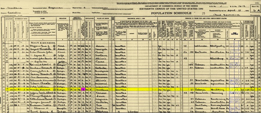 1940 United States Census, Montana