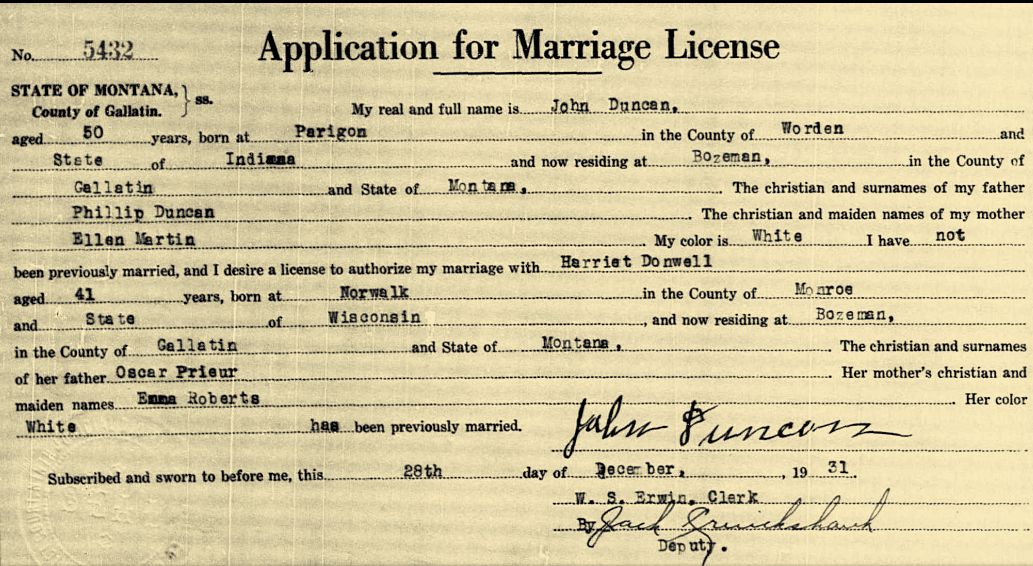 Marriage Date: 28 Dec 1931, Bozeman, Gallatin, Montana, United States