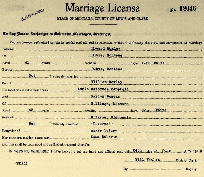 Marriage Date: 24 Jun 1935, Helena, Lewis and Clark, Montana
