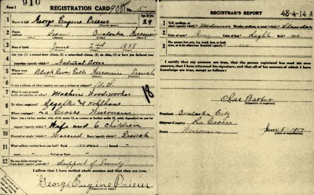 George Eugene Prieur Draft Registration 1917-1918 La Crosse, Wisconsin, United