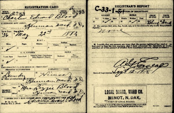 WWI Military Draft, 1918, Minot, Ward County, North Dakota, United States