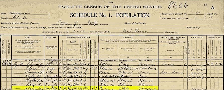----Source: Federal Census Record, Black River Falls, Jackson County Journal (30 Nov 1904)