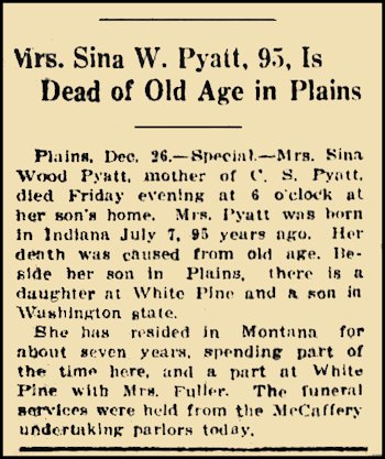 She died, 2 Dec 1918 in Plains, Sanders, Montana at