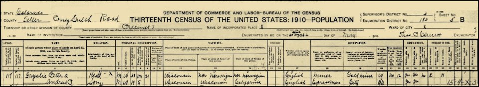 It took some time for Pete to hear what had happened to his precious daughter. He was no longer farming in Hewett Township, Clark Co., Wisconsin. Instead, he and their son Andy were working deep in the gold mine at Coney's Gultch in Teller Co., Colorado when everything went down. It was only his girls that had stayed behind to run the rooming house in Neillsville. In a likely effort to kill the past, they moved on to a new home in Aurora, Wisconsin and began a renewed life in a rather remote area and some anonymity.