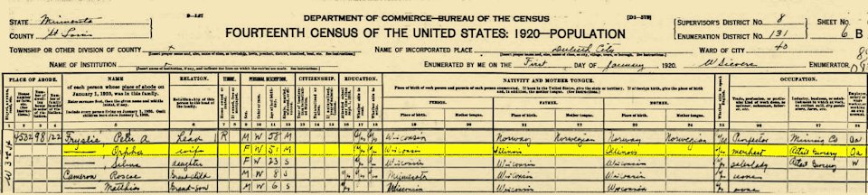 Selma Fryslie Female 4 Single White Daughter Daughter A 7 Apr 1896 Wisconsin