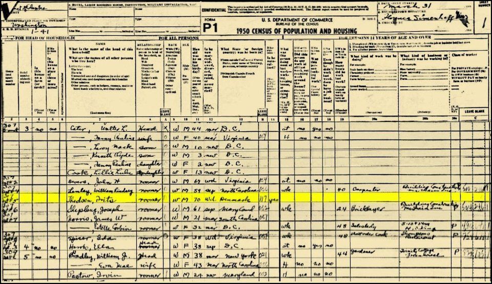 1950 Federal Census, Washington, Washington, District of Columbia, USA, G St. N. W., Dwelling # 3