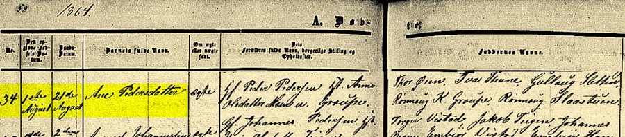 Ane Pedersdatter 21 Aug 1864 Nord-Fron, Oppland, Norge 1 Aug 1864 Peder Pedersen Male Anne Olsdatter Female Moen U Groupe Baptism