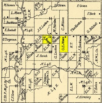 Sec. 23: R.L. Co.; A. Nelson; A. Hagen; J. Reich; Nye, Lusk and Hudson; G. Lucken; M. Peterson; O.E. Mooen; H. Thielke |