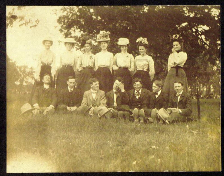 Below is a old photo from Loyal, Clark Co, WI. My great aunt Elsa Schwieso the 1st woman on the right and her husband Frank Schultz is seated 3rd from right. I don't know who the others are or when the picture was taken. Frank was born 12 Feb 1877 he married Elsa in 1901. Please contact me if you have information to add. Charmaine Becker (relative).