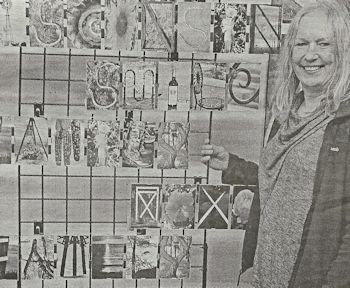 At the art class, she helped a student, Karen Blanchard, find photo letters to