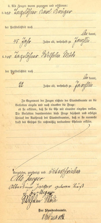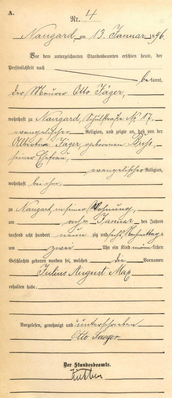 Father: Otto Jäger Mother: Albertina Jäger (nee Buss) Certificate Number: 4