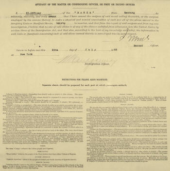 "Hansa" Ship Manifest (Click to enlarge) |