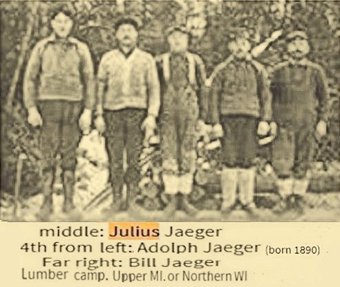 Julius Jaeger (1901) Event Type Death Event Date 1901 in Texas, Marathon, Wisconsin Residence Place Texas Gender Male Age 53 Marital Status Married Race W Occupation Farmer Birth Year (Estimated) 1848 Burial Place Texas Father's Birthplace Germany Spouse's Name Ernestine Jaeger