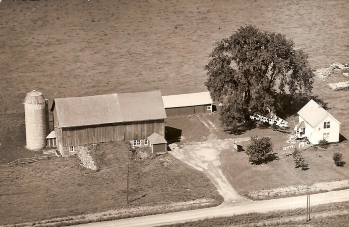 This farm was in Section 12 of the Town of Beaver on the west side of what is now Oak Grove Avenue. Most of the buildings are gone, and the empty house is nearly lost from view by the trees and brush that have grown up in the abandoned yard. (I like the clothes blowing in the wind in this tidy yard!) Helen Blaha