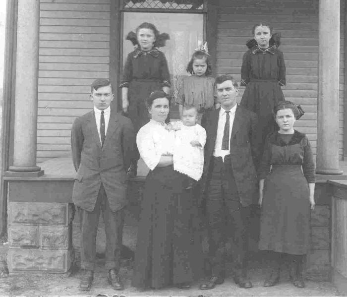 Back row: Nellie, Frances (Honey), Mary (Toots) Front row: William Arthur (Bud), Mother Mary holding George, Father William Edgar and Leona (Tots) |