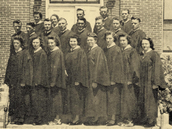THE JUNIOR CHOIR 1ST Row: Evelyn Noah, Lila Richmond, Eldora Reineking, Mrs. Eldore Humke, Gladys Kuester, Marcella Abel, Mrs. Orlin Fravert, Bernelda Noah. 2nd Row: Larry Vollrath, Victor Irvine, Ervin Steiger, Elmer Humke, Orlin Fravert, Dale Vollrath, Harvey Goeke, Gary Vollrath. 3rd Row: Mrs. Alvin Albert, Mrs. J.C. Klingeberger, Eldore Humke, Arvin Liebzeit, Harold Humke. |