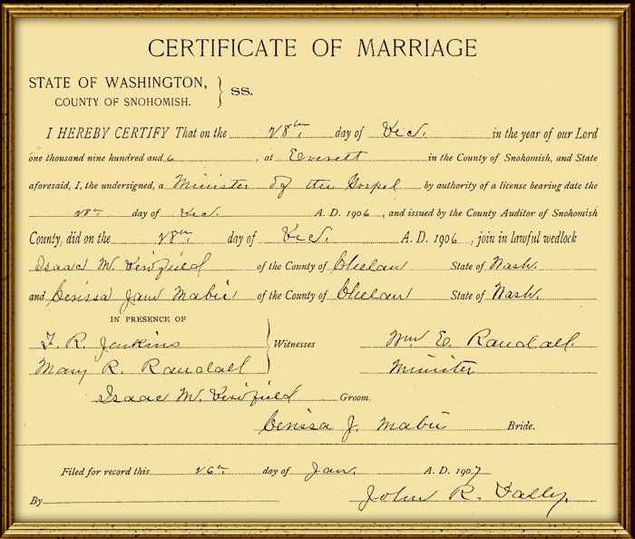 lived in Everett, WA where she married Isaac M. Winfeld just after Christmas (28
