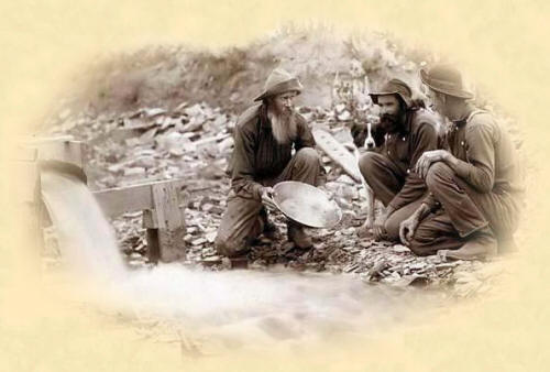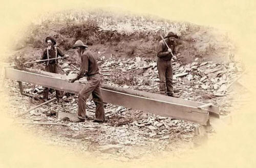 These photos were taken by an unknown photographer of unknown individuals in an unknown location to depict the art of gold mining.