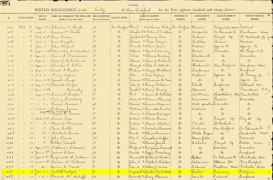 Birth: 13 Mar 1897 at New Bedford, Massachusetts
