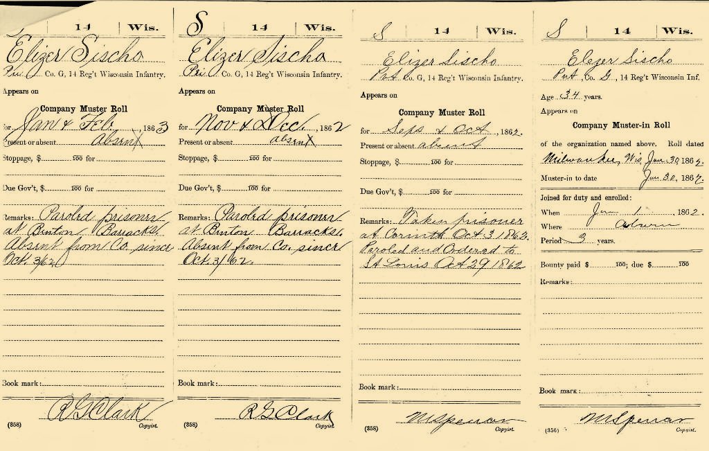 Elezer Sischo is also featured in the book, "Civil War Soldiers in the heart of Clark Co., Wisconsin."