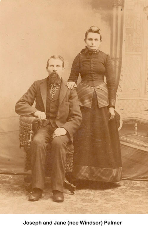 Joseph was born in Sheboygan Co., WI, Apr 1844, the oldest son of William and Esther Ann Palmer. He moved with his parents to Osceola Twp., Fond du Lac sometime in the 1850s. During the Civil War, he served with Co. I, 1st Wis. Inf., from 22 Sept 1861 to 13 Oct 1864. His unit served in KY, TN and GA. After the war, he married Jane Windsor. They lived in Osceola Twp, Fond du Lac Co. until relocating to Clark Co., WI in 1872. Joseph owned a farm in Sec. 9, York Twp., near what is now the intersection of H & K and they were among the first settlers in the area. A school house located at that intersection was initially called the "Palmer School" because it was adjacent to Joseph’s farm. It was later re-named the "Lincoln School." The Palmers had 4 children: Perry, Bert Nathan, Levi and Grace. At the time of the 1880 Census, he and his first wife, Jane, and 2 sons, Perry and Levi were living in Warner. 14 Apr 1892, Jane died at Hemlock, Warner Twp. and was buried in the York Center Cemetery. After her death, Joseph’s sister-in-law (Sophronia Bassett) helped care for his family until he remarried in 1896. By 1900, Joseph and his second wife, Julia, and two step-children, Carrie and John were living in Warner where Joseph was operating a grist mill in Hemlock. Sometime after 1900, Joseph Palmer sold his farm and moved to WA State. In 1910 they were living in the Charleston Precinct, Kitsap Co., WA, where Joseph was a laborer in shipyard. At that time, he and Julia had been married 14 yrs. Joseph died 8 Dec 1918 in Charleston, WA at 75 yrs., 3 mos., and 13 da.