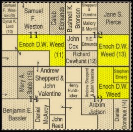 Enoch was born 5 Aug 1827 in Hinesburg, Chittenden Co., VT, the son of Henry and Sarah Maria (Woodbridge) Weed. He died in 1902 and was buried in the Village Cemetery, Hinesburg, VT. Huldah and Josiah married 29 Nov 1763 in Hartford, CT. He was born 29 Nov 1763 in Hartford and died 3 Jul 1835 in Monkton, VT. Huldah (the widow of Josiah Lawrence) was his first wife. He married Sally Sarah Willoughby in 1788.