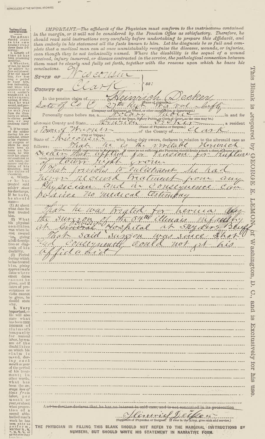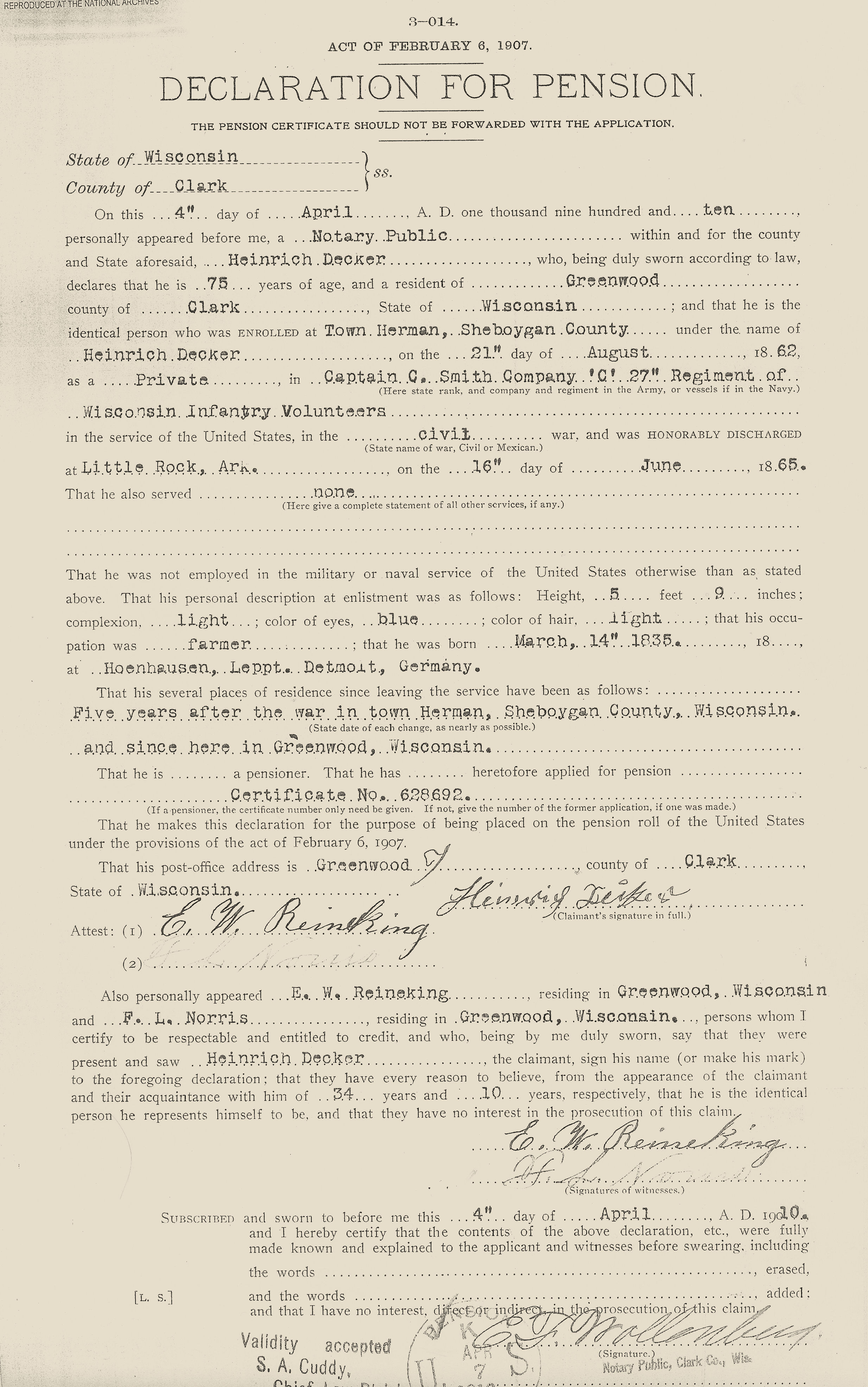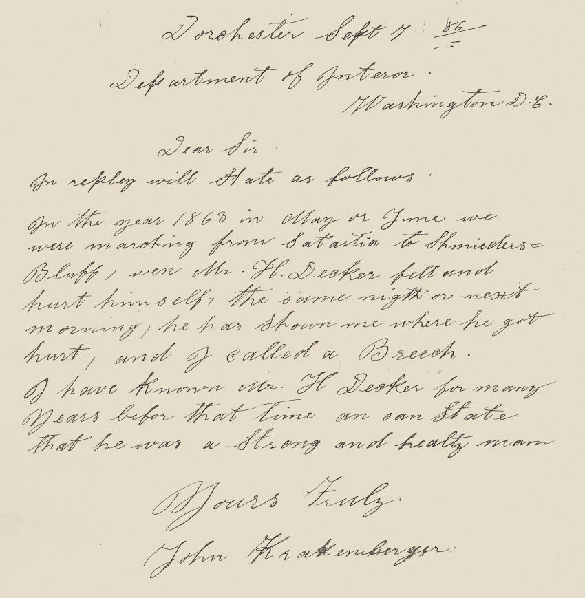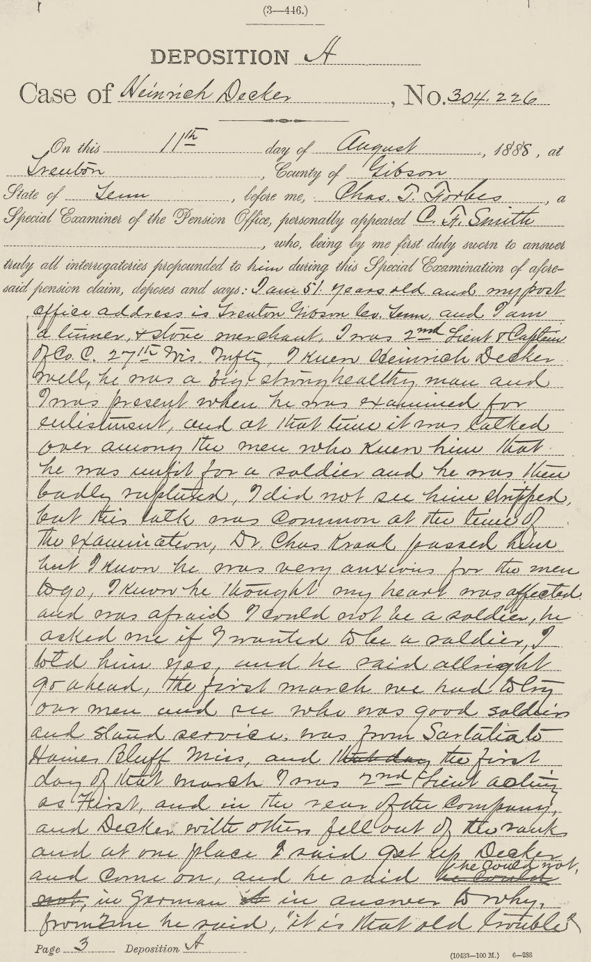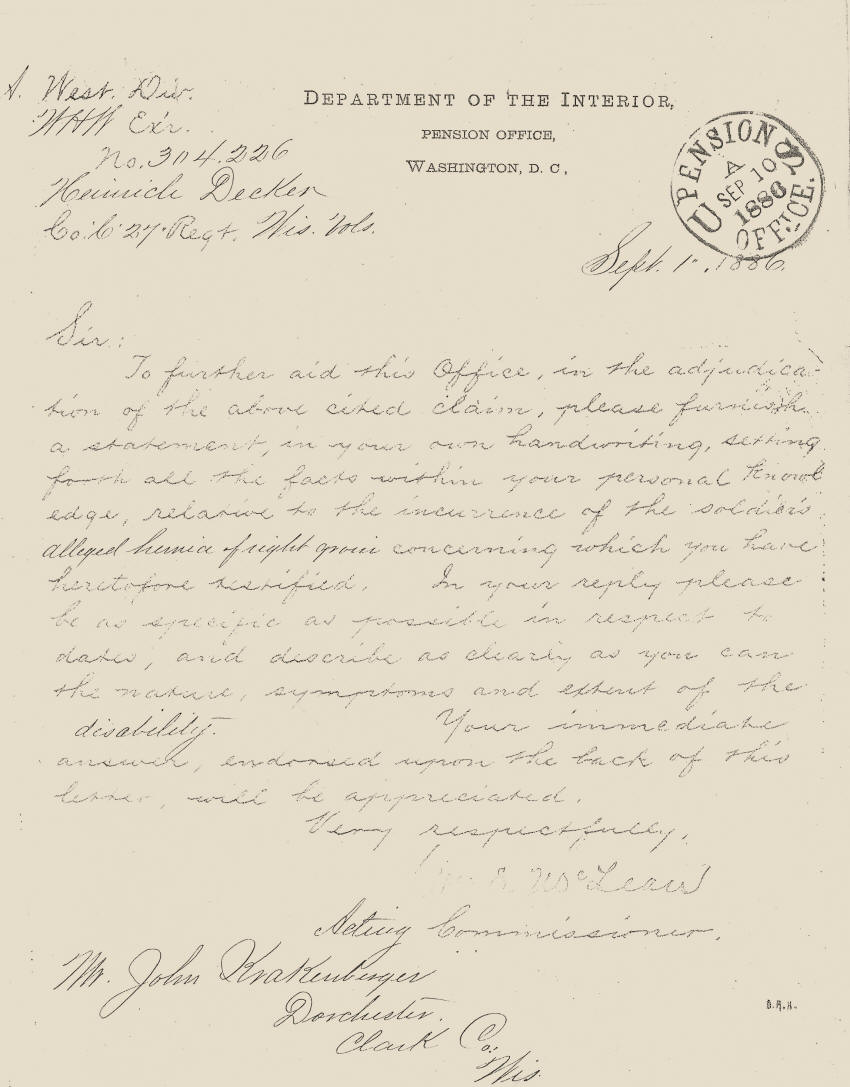 Heinrich Decker Military Record--Civil War Veteran of Clark county, WI