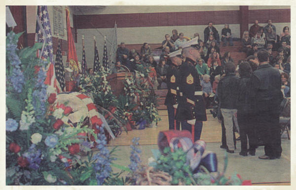 But for one day last Wednesday the grieving community opened its door to the public for their visitation and condolences at the Loyal High School gymnasium. And, from near and far, the people came. Many never knew the Marine who died. Yet, they arrived and paid homage to the sacrifice of an American soldier, his family and his hometown.