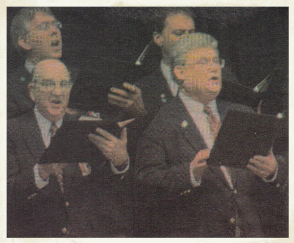 From words to music, the praises for a young man, continued. A friend, Travis Strey, accompanied only by his guitar and memories of a fellow musician’s love of music, played a favorite song. The Clark County Choraliers and Clark County Male Chorus followed, taking turns in singing songs of glory and inspiration.