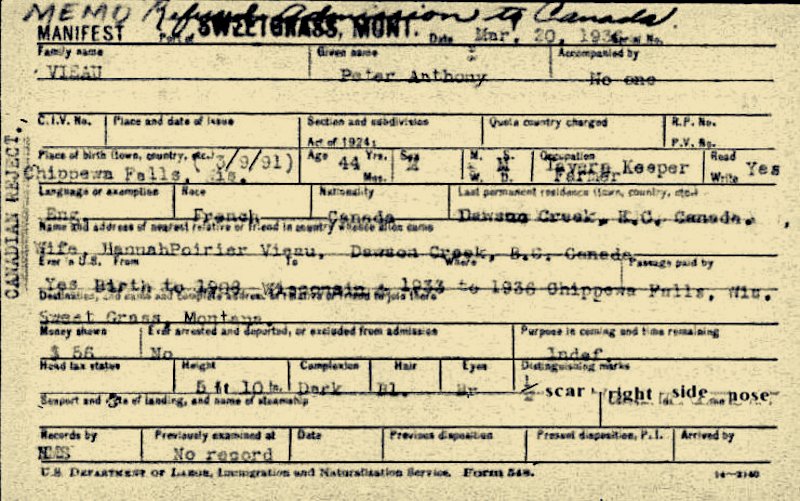 Manifest Memo--Sweet Grass, Montana, 20 Mar 1936