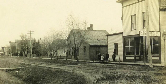The "Milwaukee Store" (Dorchester, Wis.) to the far right sold Groceries and Dry Goods.