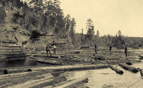 in putting in logs on the river and was engaged with a gang of men in breaking a