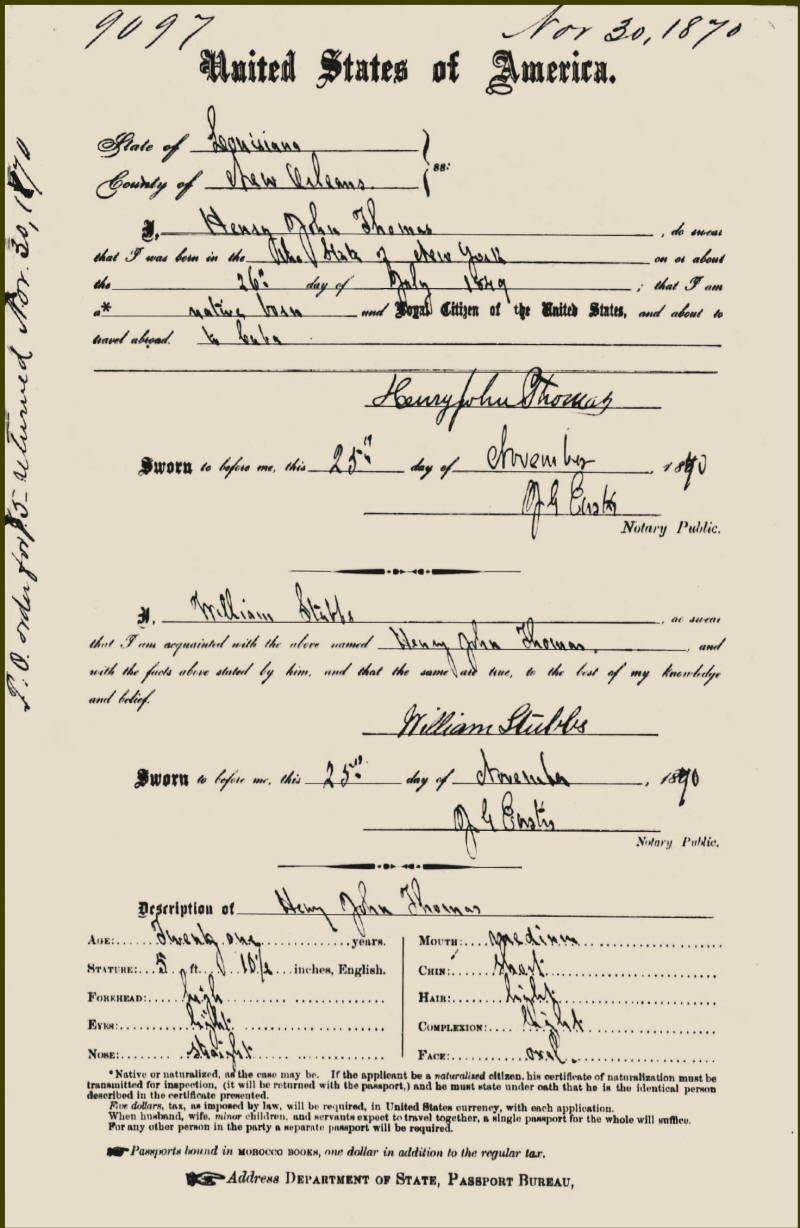 Birth Place: The State of New York Passport Issue Date: 25 Nov 1870