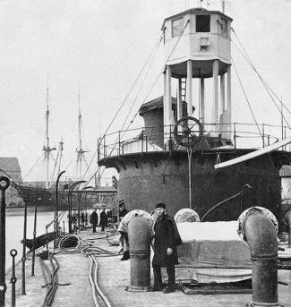 The "Dictator" was a 4438-ton single-turret seagoing monitor constructed in New York, NY. It was commissioned to serve the Navy in November 1864. However, her power plant problems kept her initial service relatively brief and she was decommissioned that next September, 1865 at the League Island Navy Yard, Philadelphia, PA. The Dictator sailed in July 1869 to serve with the North Atlantic Fleet, but was again retired in June 1871. Her final period of commissioned service was spent in the Atlantic coast area between January 1874 and June 1877. Then in Sept of 1883, the USS Dictator was sold for scrap.