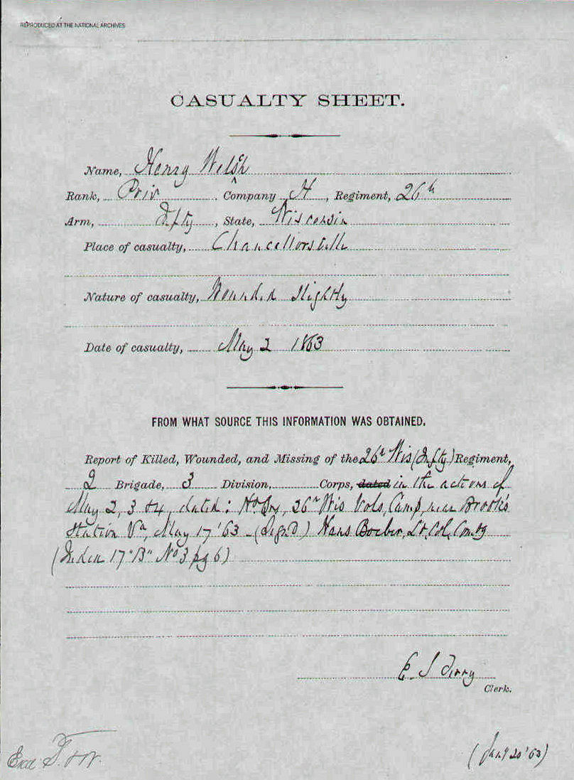wound received in the battle of Chancellorsville, May 2, 1863. In
