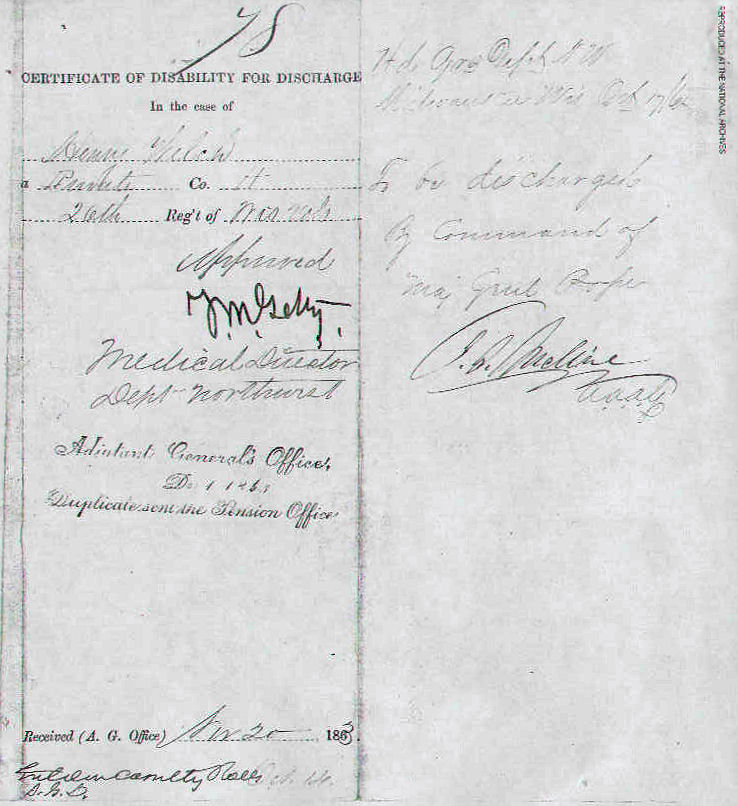 Volunteer Infantry, and served until October 14, 1863. He was then